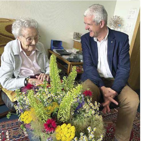 Frau Jenny Meystre-Jacotet feiert ihren 103. Geburtstag in der Platten Meilen. Glückwünsche und Blumen zu…