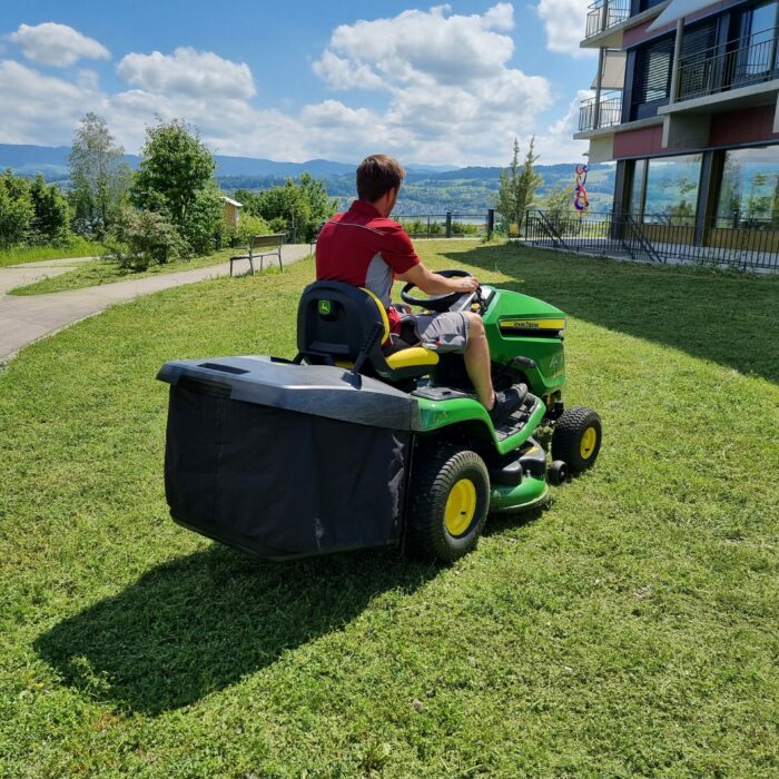 Perfektes Wetter für Gartenarbeit! Mike, Fabio und Luca vom Technischen Dienst machen den Garten fit…