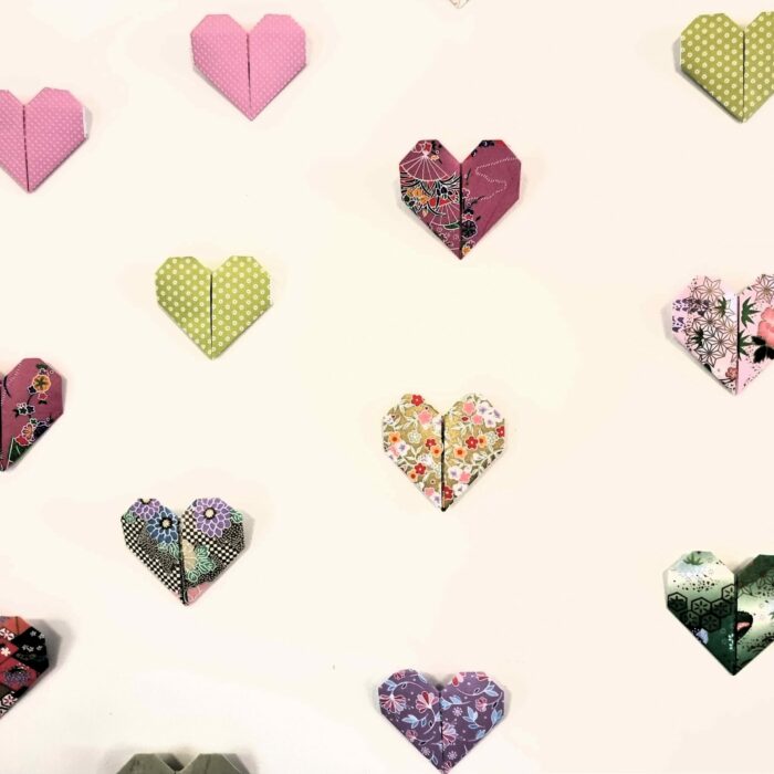 Eine Wand voller Herzen für alle Mütter, Grossmütter und Urgrossmütter