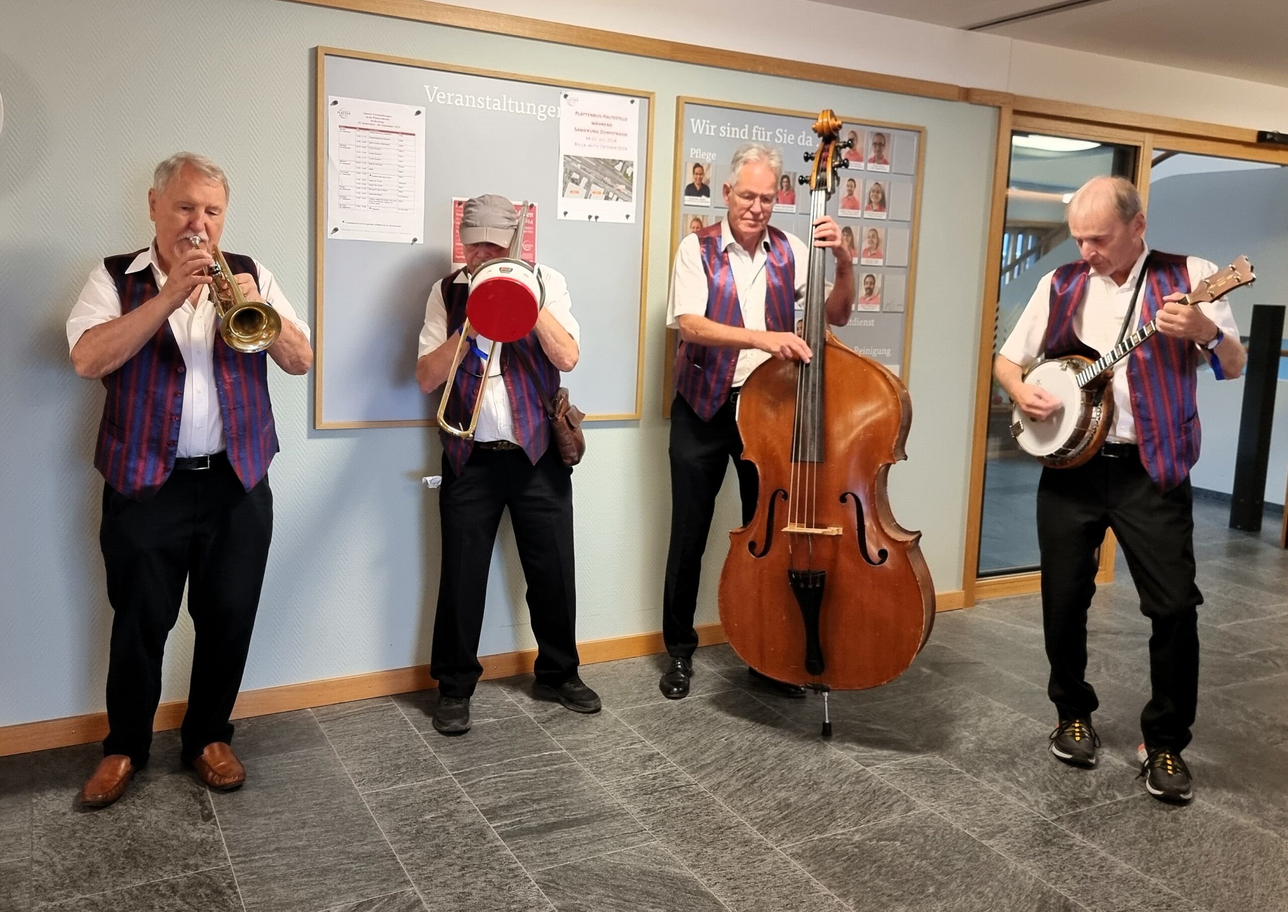 Das Platten Fest ist jedes Jahr bei den Bewohnenden, ihren Angehörigen, den Mietenden, den Mitarbeitenden, Freiwilligen, Freunden des Hauses und der Meilener Bevölkerung ein Fixpunkt in der Agenda. Frischen Wind brachten am Sonntag, 08. September gleich zwei Konzerte. «The Harlem Ramblers» spielten in Originalformation und am Nachmittag trat die junge Tambourengruppe «Incredibles» der KMZ (Knabenmusik Zürich) auf.
