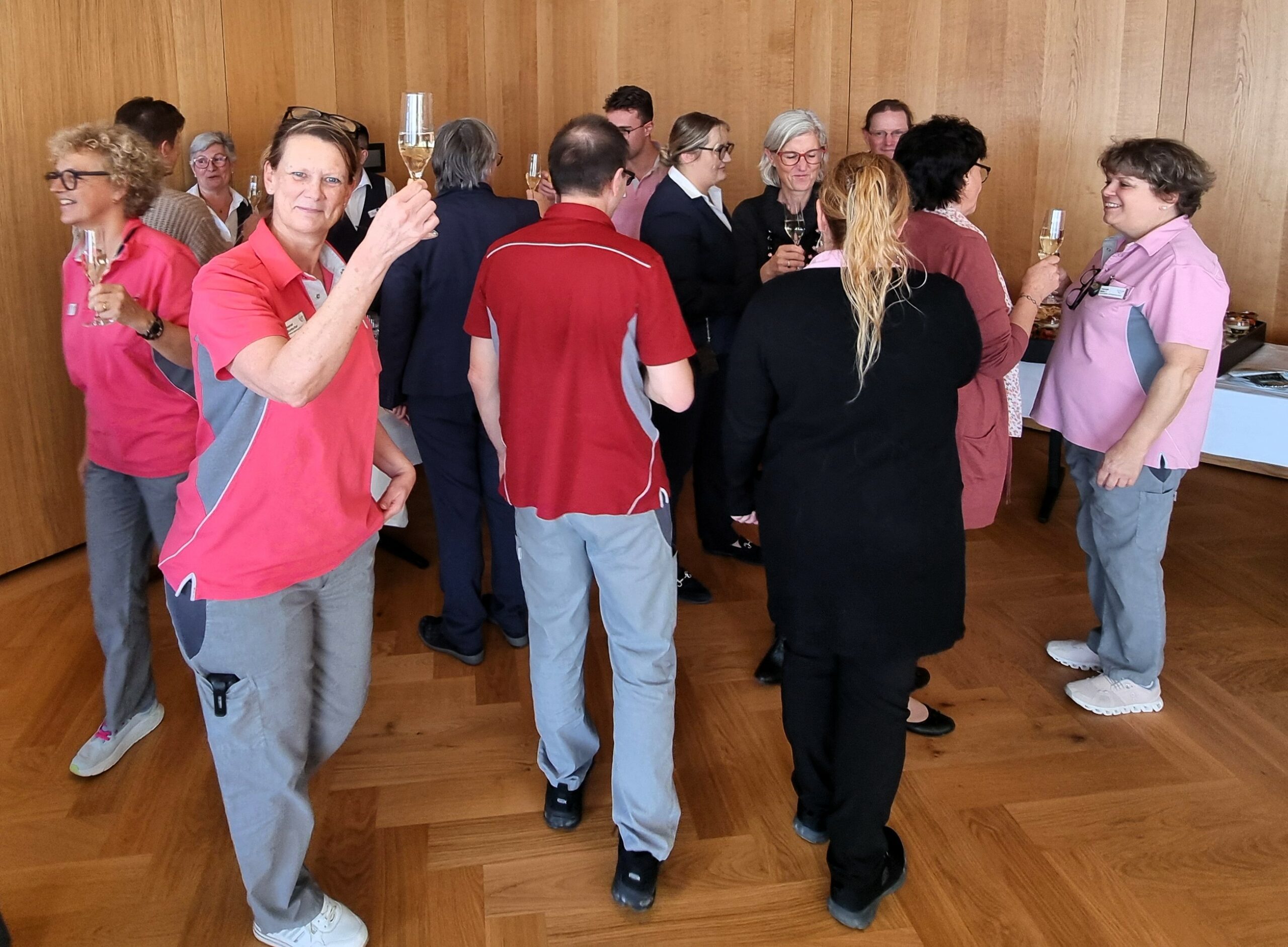 Bei herrlichem Januar Wetter begrüssen die Bewohnenden zusammen mit den Mitarbeitenden das neue Jahr. Stiftungsratspräsident Heinz Pfenninger bedankt sich bei den Bewohnenden für das Vertrauen. Geschäftsführerin Serenella von Schulthess dankt den Mitarbeitenden für ihr Engagement und ihre Loyalität. Nach den kurzen Ansprachen wird auf ein gesundes, glückliches 2025 angestossen.