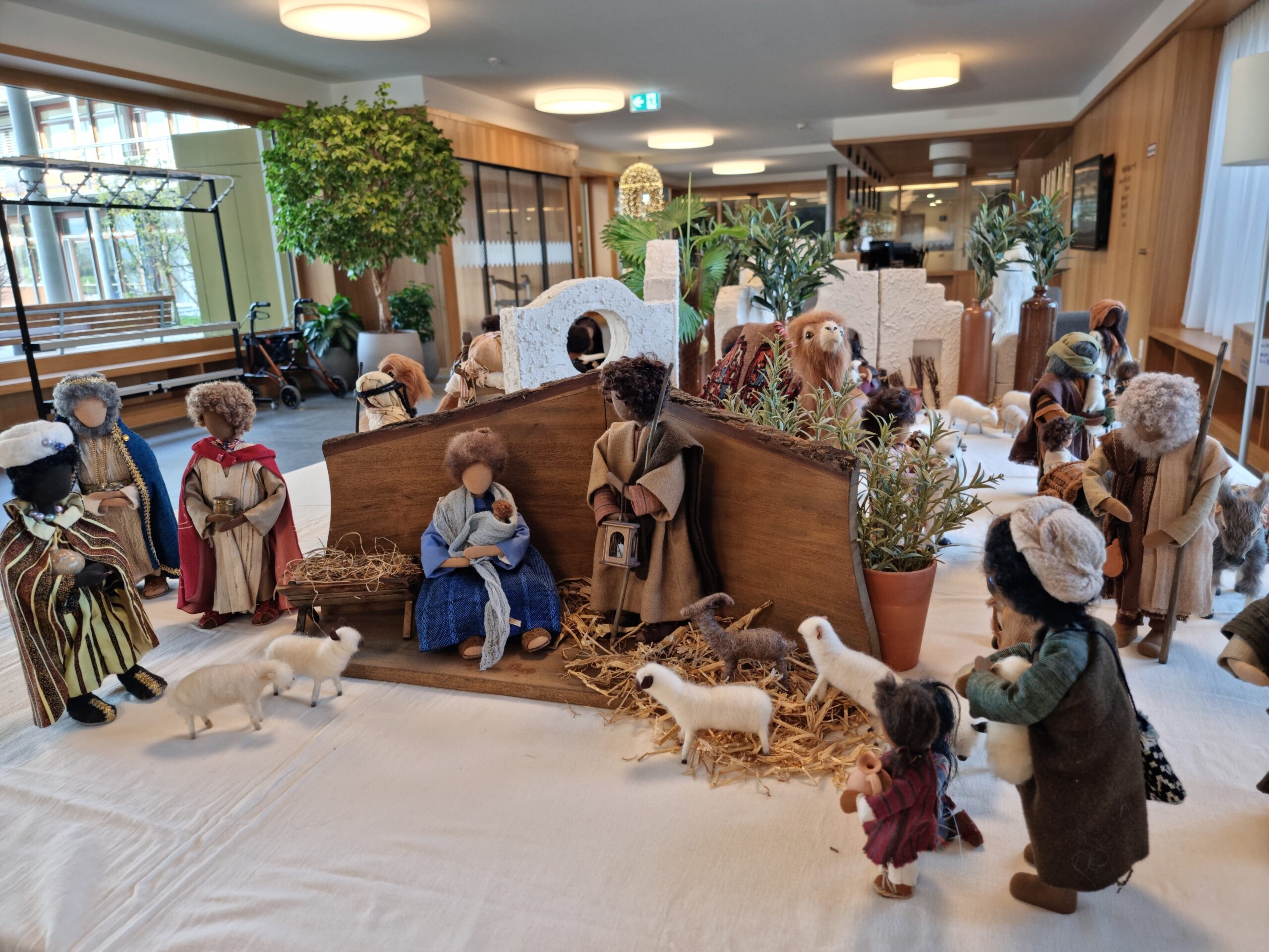 Juhuuu – es ist wieder soweit – die Platten Meilen macht sich bereit für die Advents- und Weihnachtszeit. Das ganze Haus wird festlich dekoriert. Der grosse Weihnachtsbaum in der Lobby mit den roten Kugeln, den Sternen und den Lichterketten sorgt für die weihnachtliche Stimmung. Das Adventsveranstaltungsprogramm für unsere Bewohnenden und ihre Angehörigen ist organisiert und die Vorfreude steigt. Maria ist daran, die Krippe aufzubauen. Mike und Fabio stellen draussen in der Gartenanlage einen Weihnachtsbaum und die Laternen auf. Jetzt fehlen nur noch ein paar Schneeflocken und etwas Guetsliduft…
