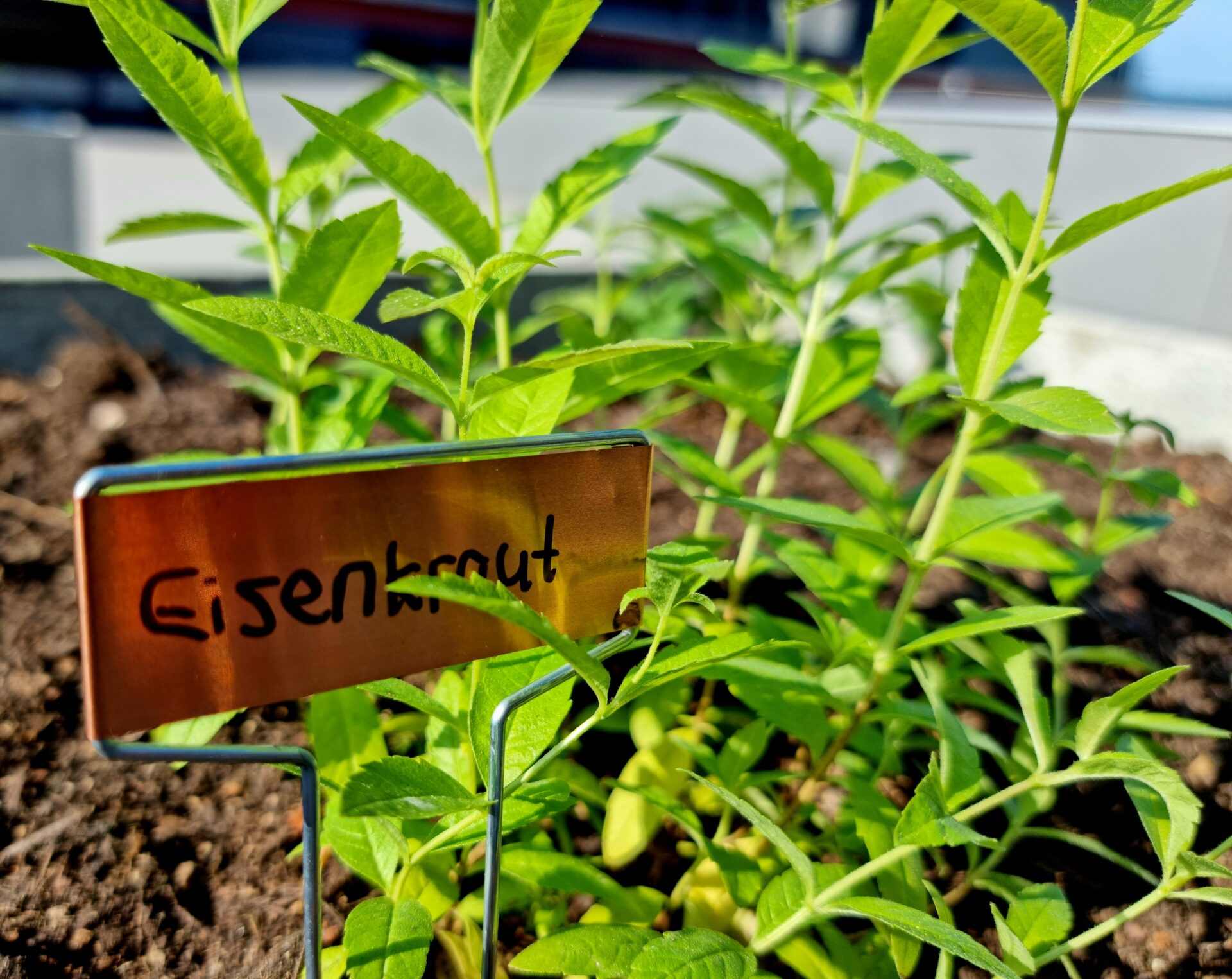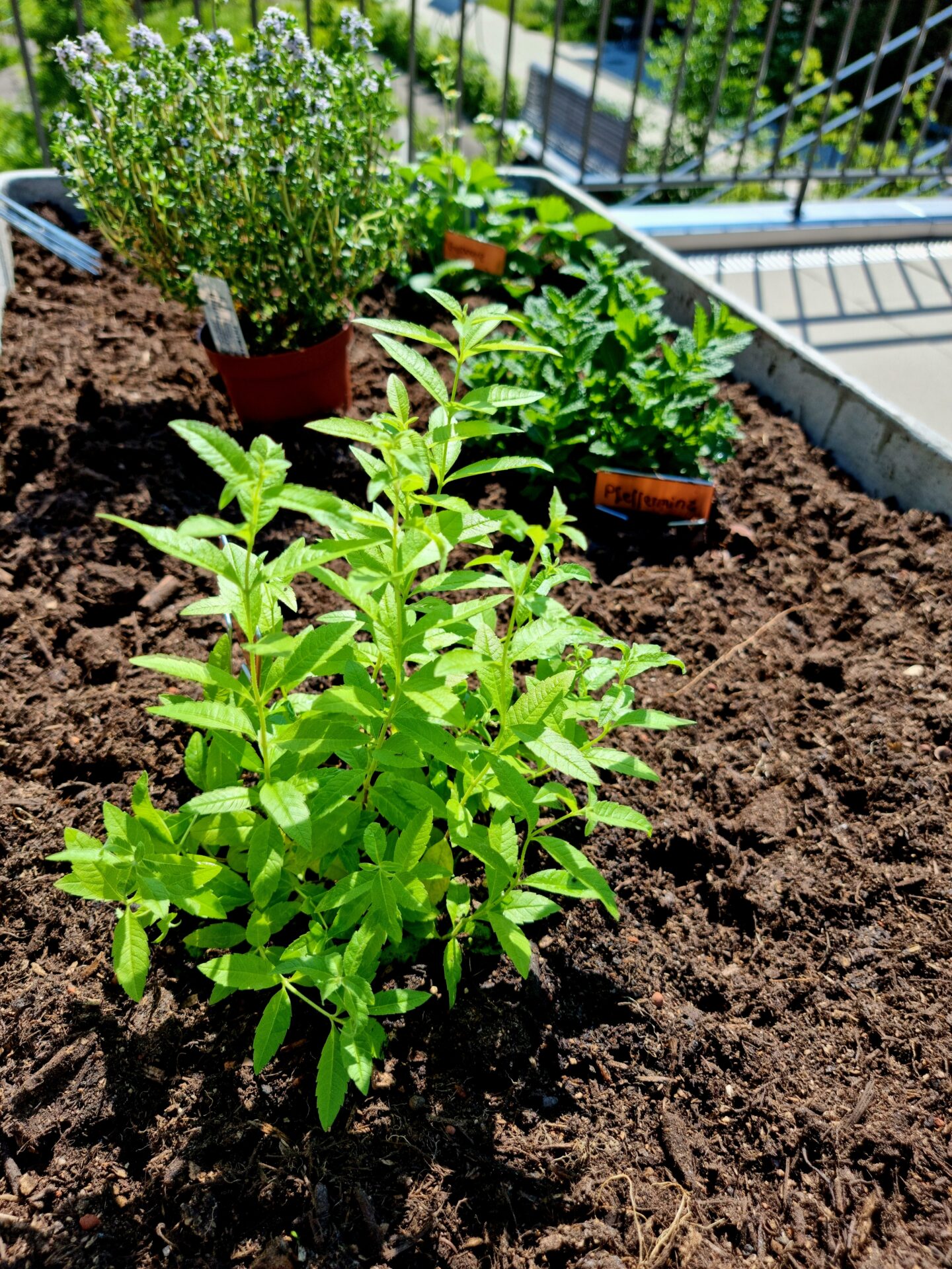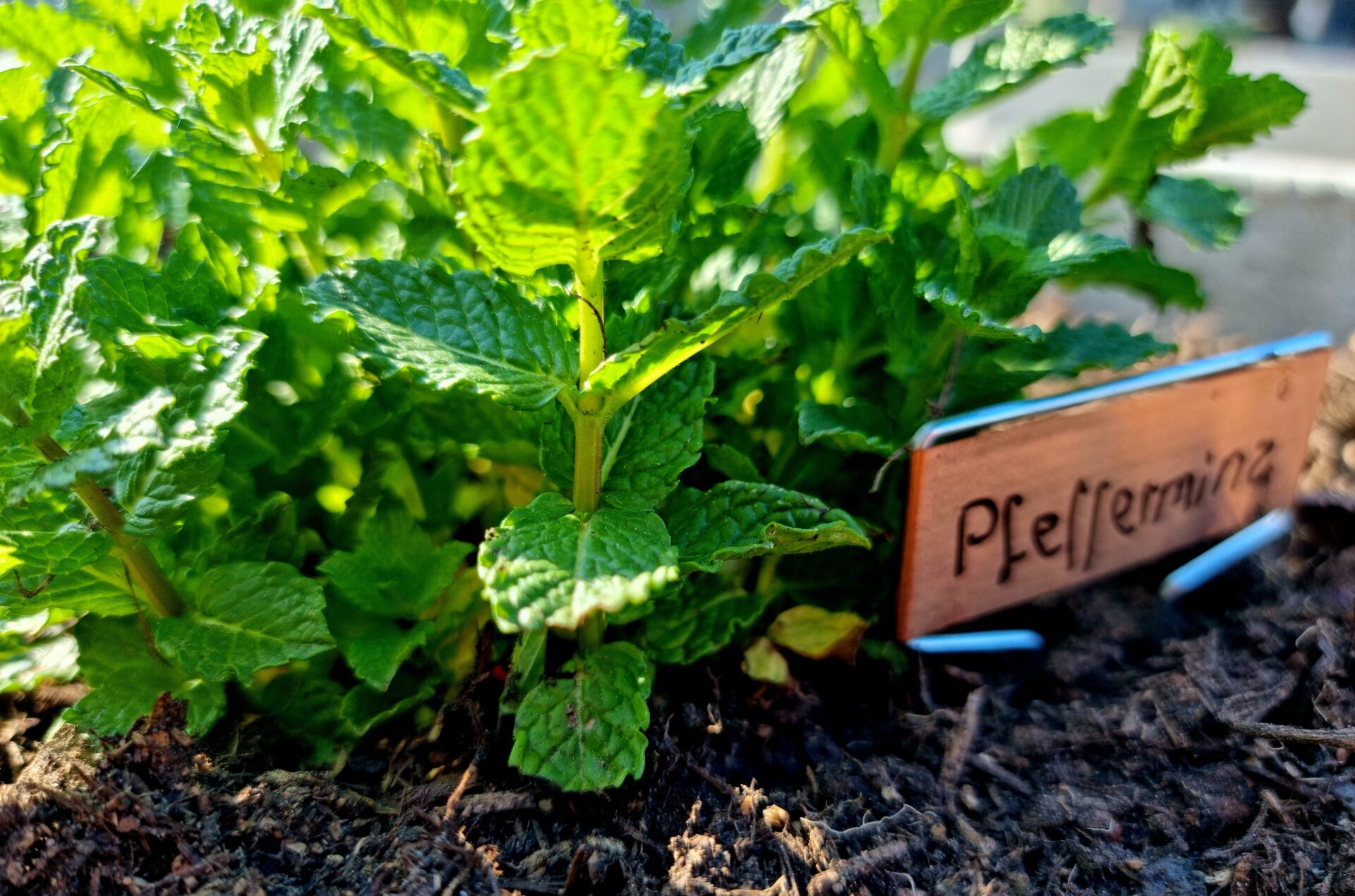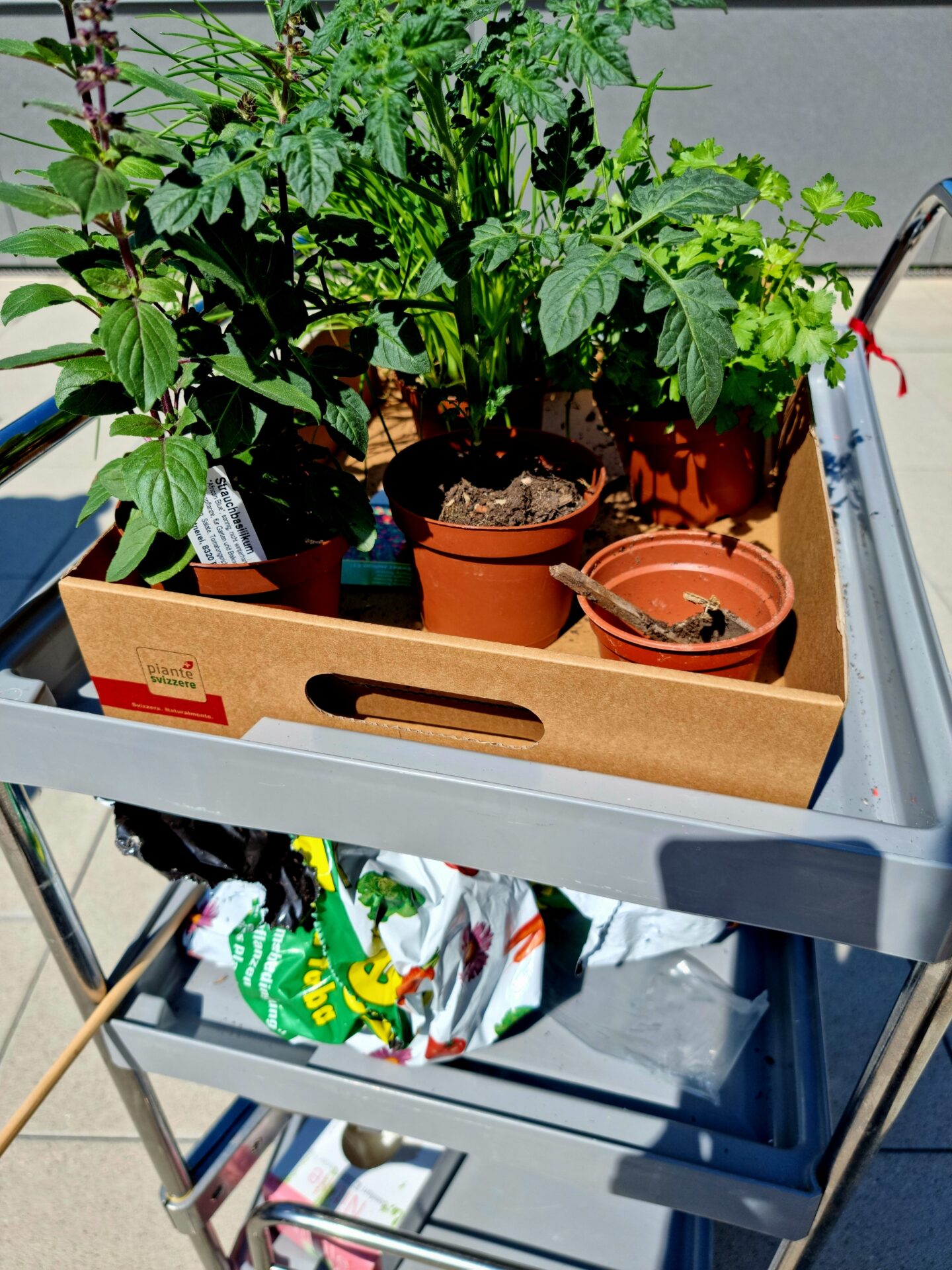 Die Bewohnerinnen und Bewohner der Demenzwohngruppe haben im Rahmen der Aktivierung auf der Terrasse einen hübschen Kräutergarten angelegt. Gepflanzt wurden Küchenkräuter wie Peterli, Strauchbasilikum, Thymian oder Schnittlauch. Diese Kräuter werden in der Plattenküche verwendet und verfeinern die Gerichte. Die Teekräuter Eisenkraut und Pfefferminze werden für erfrischende Getränke bei sommerlichen Temperaturen verwendet.