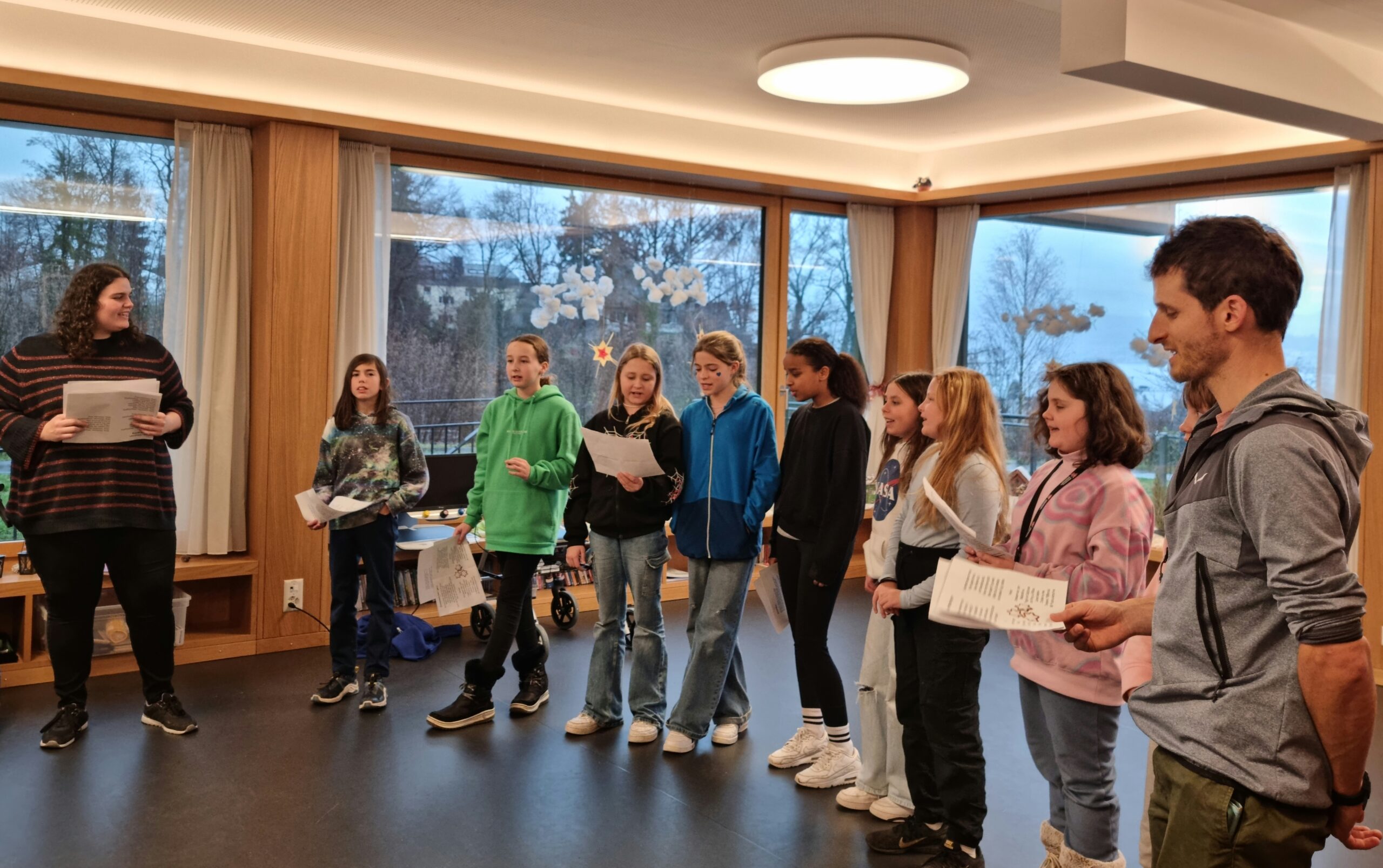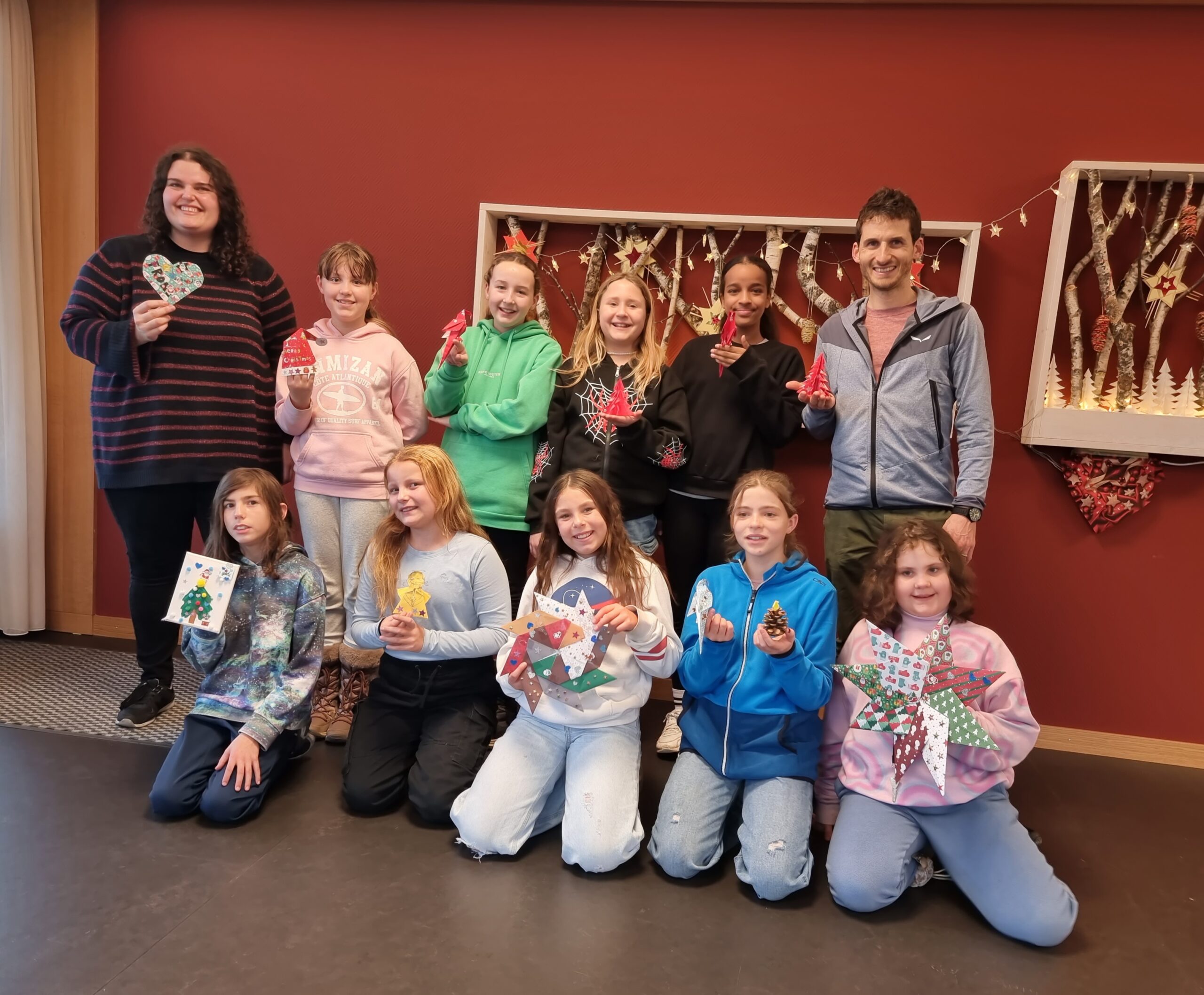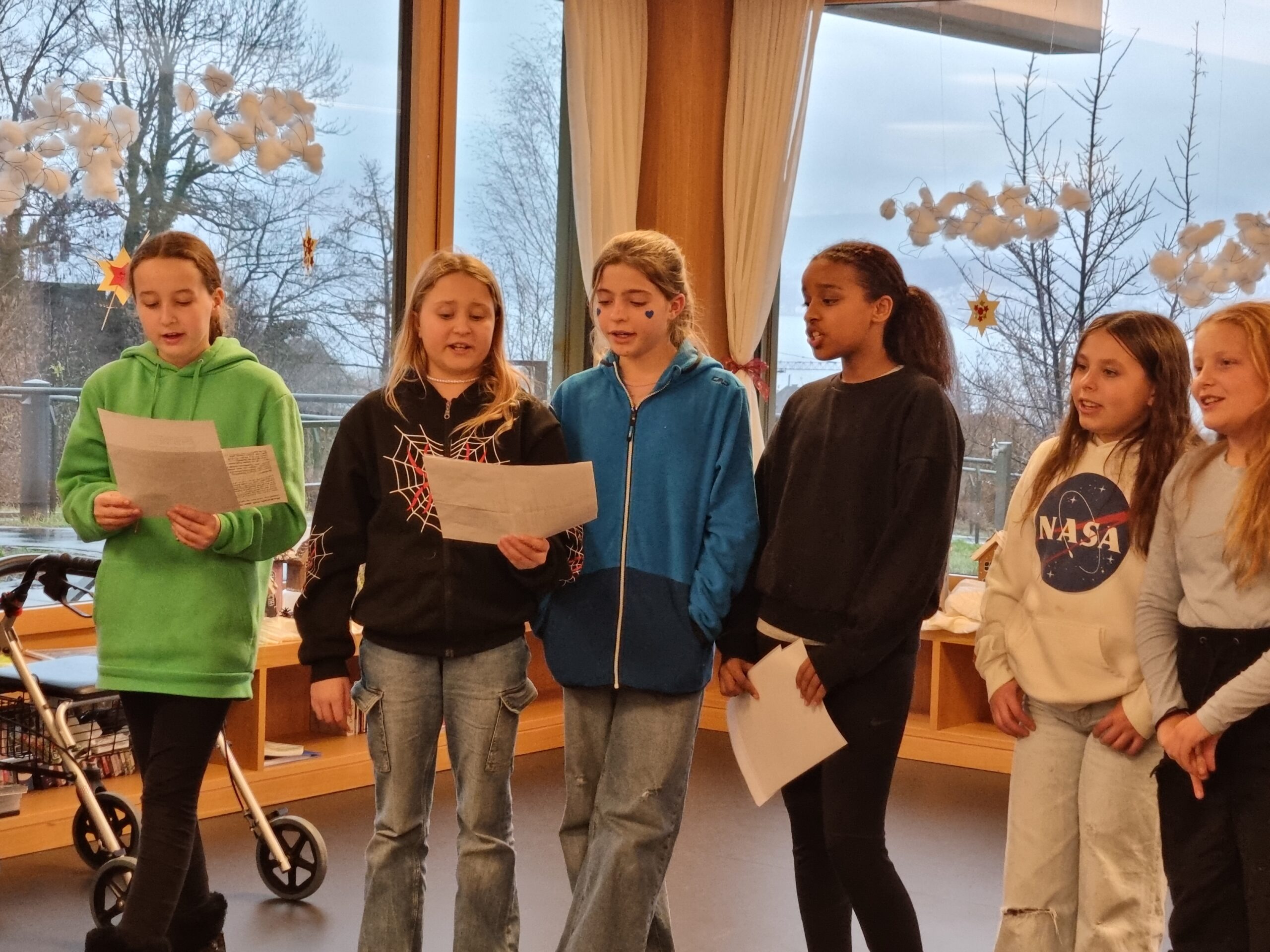 Die Jugendlichen des Jugendtreffs „Stella“ der Jugendarbeit Meilen haben Origami Tierchen gefalten und diese zu den Bewohnenden der Platten Meilen mitgebracht. Gemeinsam wurden die Papierfiguren verziert. Nach dem Basteln gab es Mandarinli, Weihnachtsguetsli und Punsch für alle. Die Bewohnenden erzählen was sie früher gebastelt haben. Damals waren Strohsterne beliebt oder man dekorierte den Baum mit echten Tannzapfen, die man bei einem Winterspaziergang im Wald sammelte. Um noch etwas mehr in Weihnachtsstimmung zu kommen, sangen alle zusammen ein paar Weihnachtslieder. Vielen Dank für Euren Besuch in der Platten Meilen – Salomé, Roman und alle, die heute bei uns in der Platten Meilen waren! Jetzt kann Weihnachten kommen.