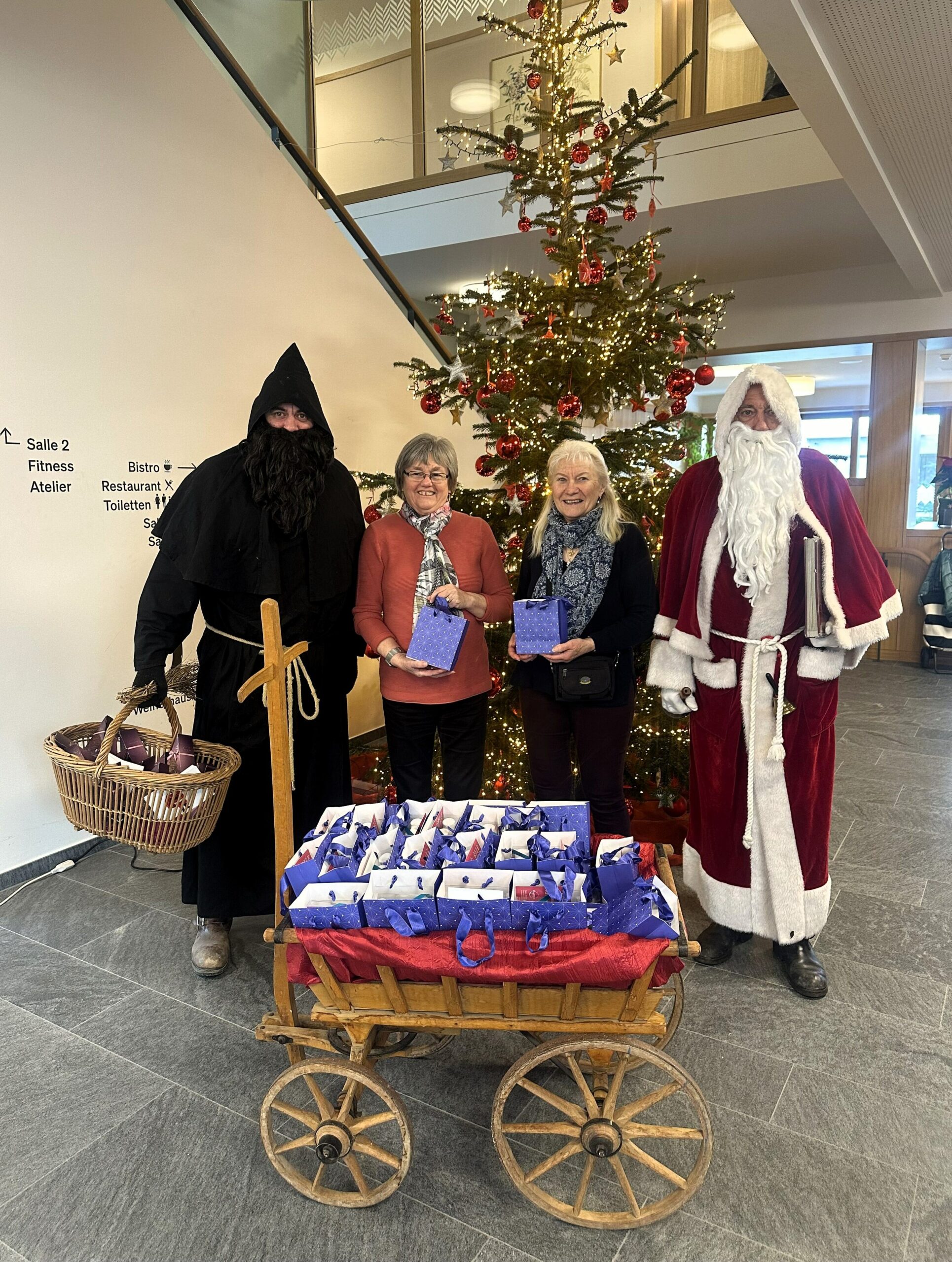 Am 6. Dezember klingelte das Glöckchen und die Bewohnenden und Mietenden wussten – es ist soweit – der Samichlaus kommt mit seinem Schmutzli gleich um die Ecke ins weihnachtlich dekorierte Restaurant. Auch dieses Jahr wurden der Samichlaus und der Schmutzli von den Damen der Frauenvereine Meilen begleitet. Die Frauenvereine Meilen spenden jedes Jahr ein schönes Geschenk für die Bewohnenden und halfen dem Samichlaus die Geschenke zu verteilen. Die Platten Meilen bedankt sich für dieses grosszügige Engagement.