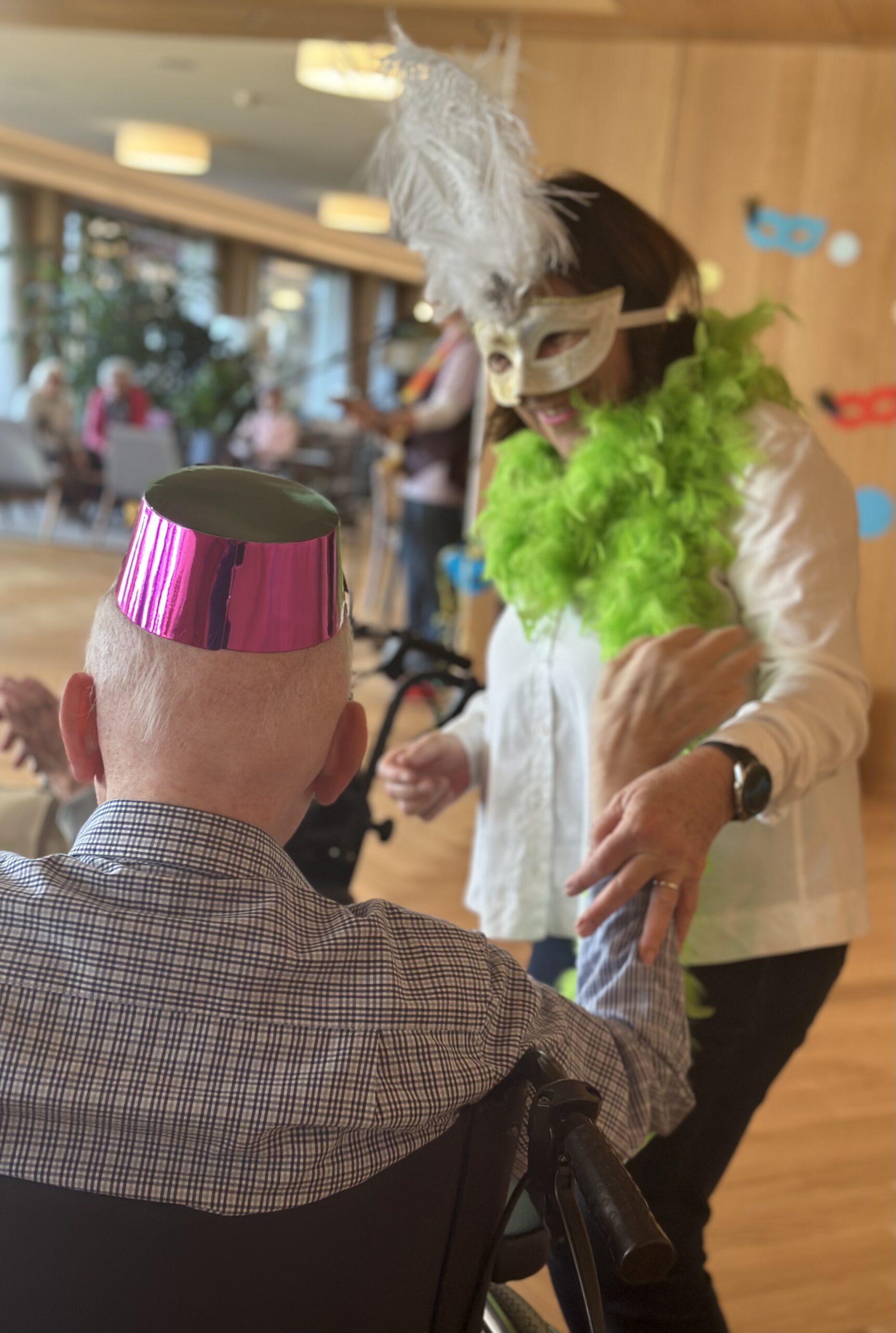 Es ist Fasnachtszeit! Auch in der Platten Meilen wird gefeiert. Am „Schüblig Ziischtig“ wird gelacht und getanzt. Bunte Luftschlangen, Confetti und Fasnachtsdekorationen sorgen für ein fröhliches Ambiente. Es gibt Kaffee und feine „Fasnachtschüechli“, die die Frauenvereine von Meilen den Bewohnenden offerieren. Die Platten Meilen und ihre Bewohnenden schätzen diese Geste sehr und sind dankbar für dieses Engagement.