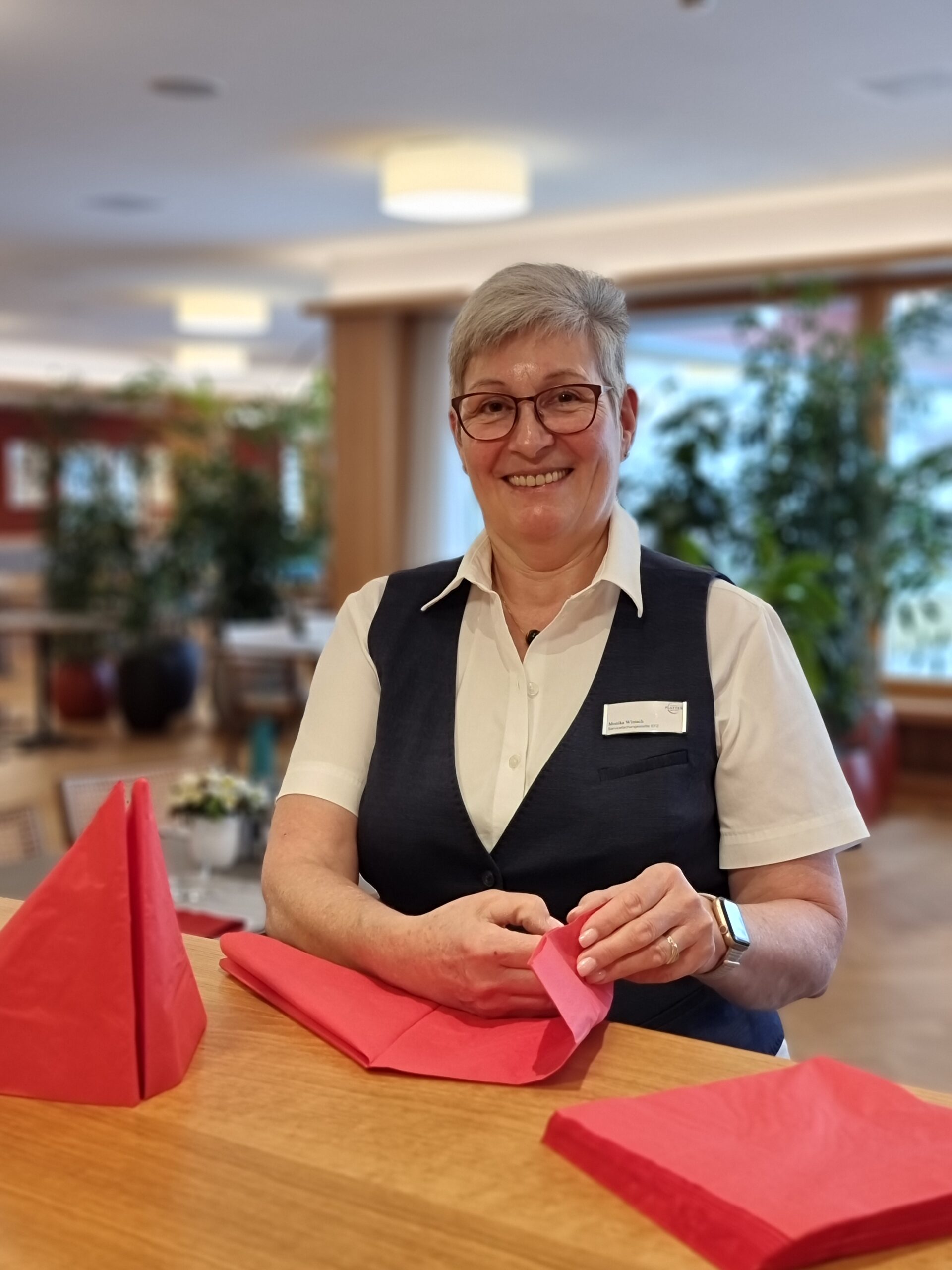 «Ich liebe es, den Bewohnenden mit kleinen Aufmerksamkeiten eine Freude zu bereiten. » Monika Wintsch, Mitarbeiterin im Restaurant