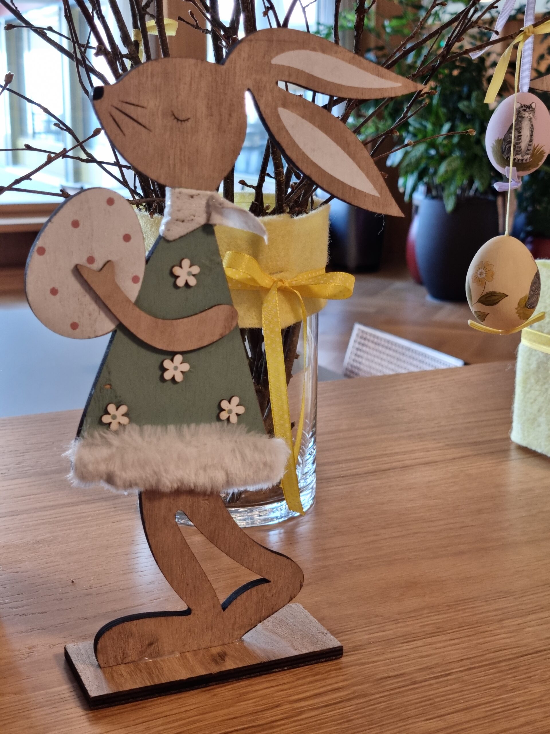 Maria, unsere Dekorationsmeisterin, hat mit ihren Dekorationsideen den Frühling ins Haus gebracht und die Platten Meilen für Ostern dekoriert. Im Eingangsbereich steht ein wunderschöner Osterbaum. Auch alle Abteilungen sind österlich dekoriert. Auf der Terrasse bringen die roten Tulpen  Frühlingsstimmung und bereichern die atemberaubende Aussicht. Das Restaurant schmücken frische Farben, Osterhasen und Blumen.